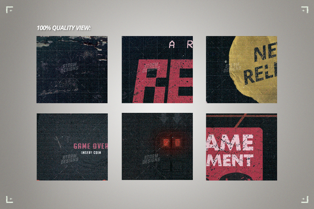 This retro gaming video games flyer layout is fully layered, very well organized and easy to edit. You can insert your own pictures inside each screen of the arcade cabinet machines, and you can edit the texts of the top and bottom panels, as well as insert your own pictures inside the side panels of the left and right arcade machines. Inside the downloaded file you'll find an Instructions text with the detailed informations on how to customize the design of this VHS style retro gaming flyer design.