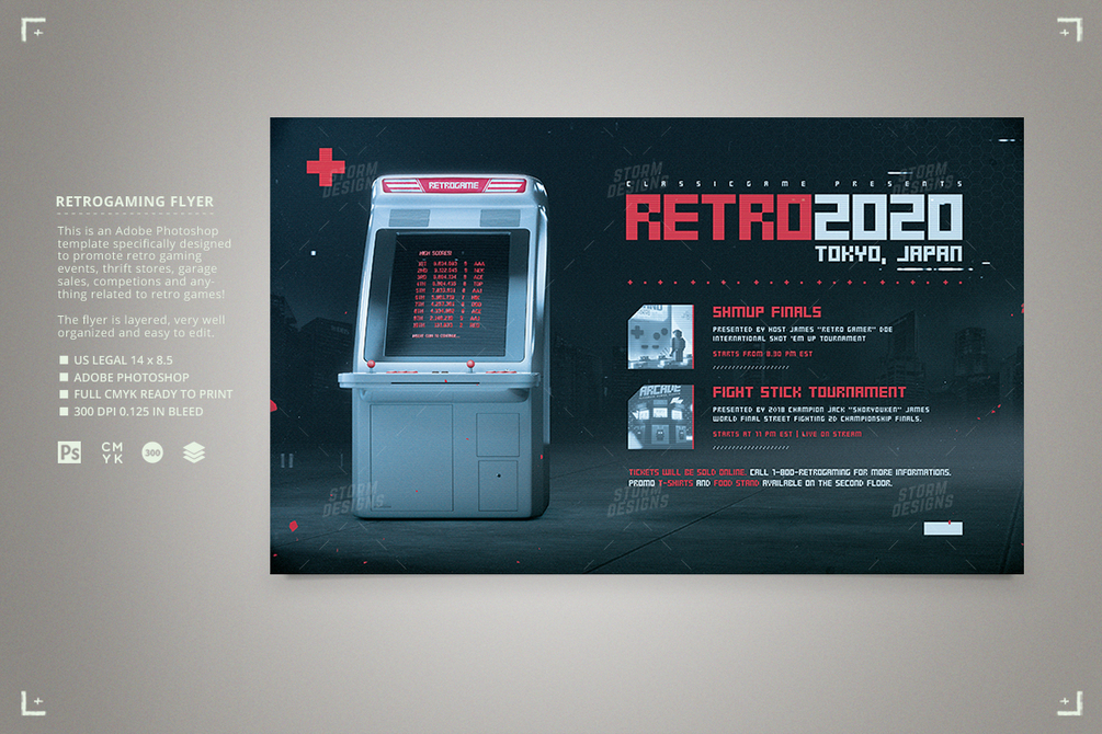 Retro Gaming Flyer SHMUPs Arcade Mockup
