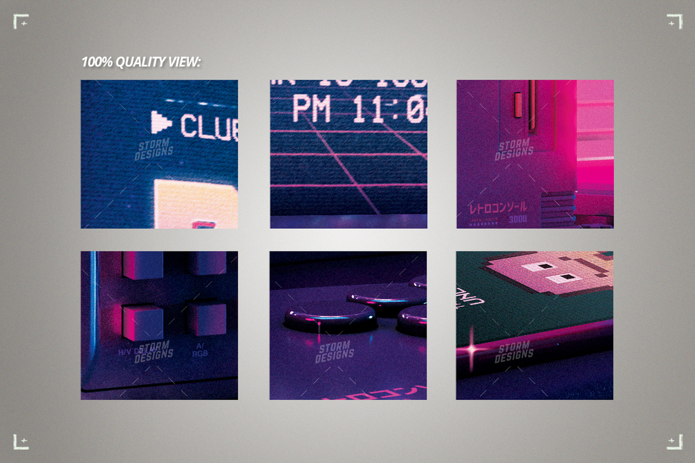 Inside the downloaded file you'll find an Instructions text with the detailed informations on how to customize this synthwave retro game flyer design. Three quick-selections layers with the various elements of this retro gaming template will help you to quickly customize this flyer even further if you want to.