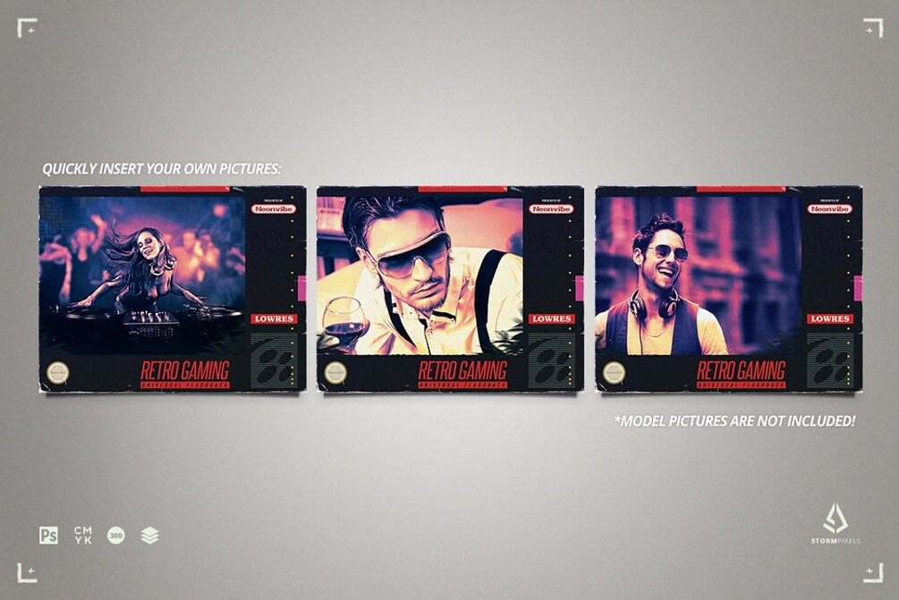 This flyer design is ispired by the classic Super Nintendo box cover art. NOTE: The pictures of the models in the second preview image (the woman DJ and the two men) are NOT included, you have to put your own.